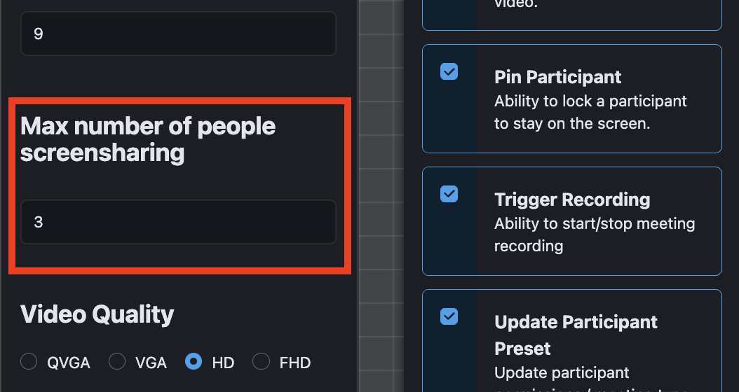 Configure the number of people who can screenshare at once using preset configuration